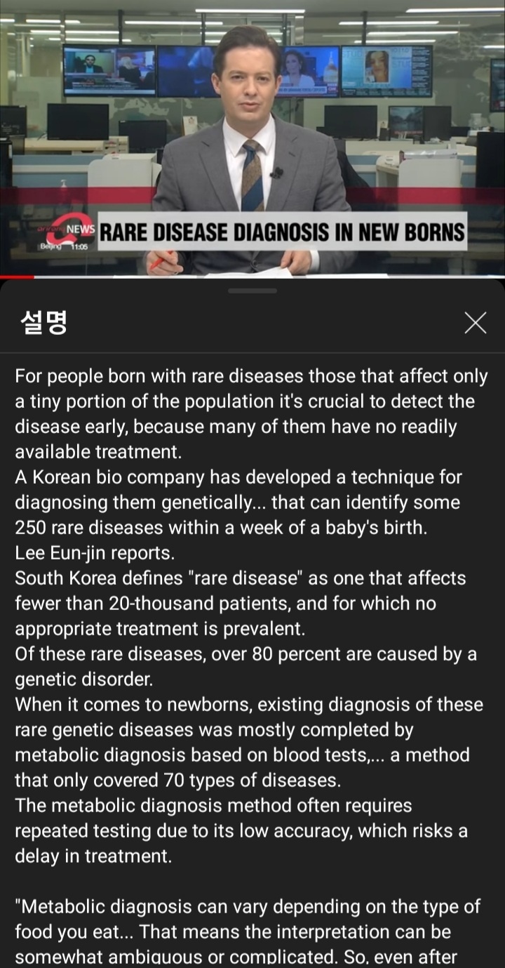A Korean bio company has developed a technique for diagnosing them genetically.... that can identify some 250 rare diseases within a week of a baby's birth.